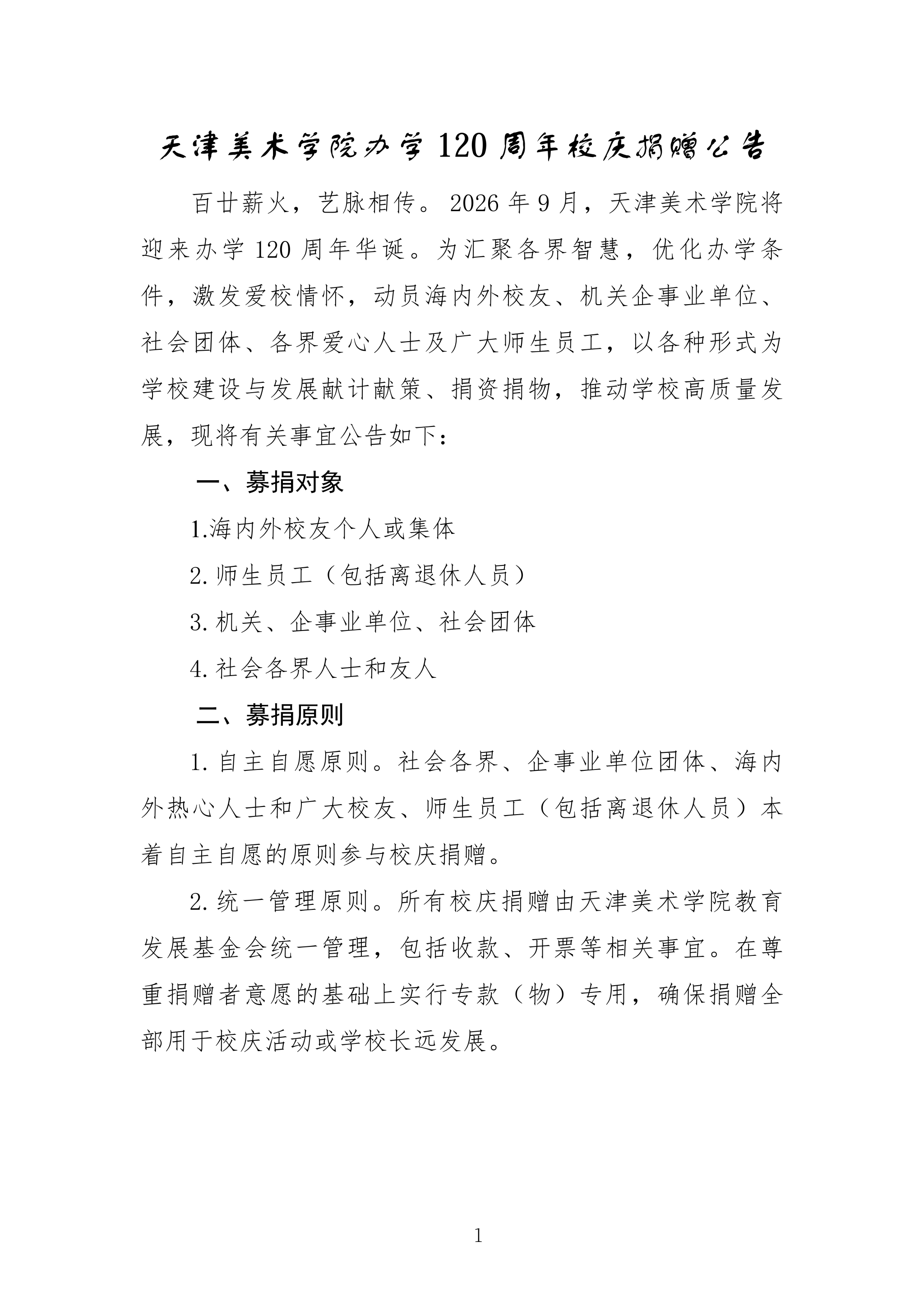 天津美术学院办学120周年校庆捐赠公告百廿薪火,艺脉相传。 2026年9月,天津美术学院将迎来办...【详细信息】